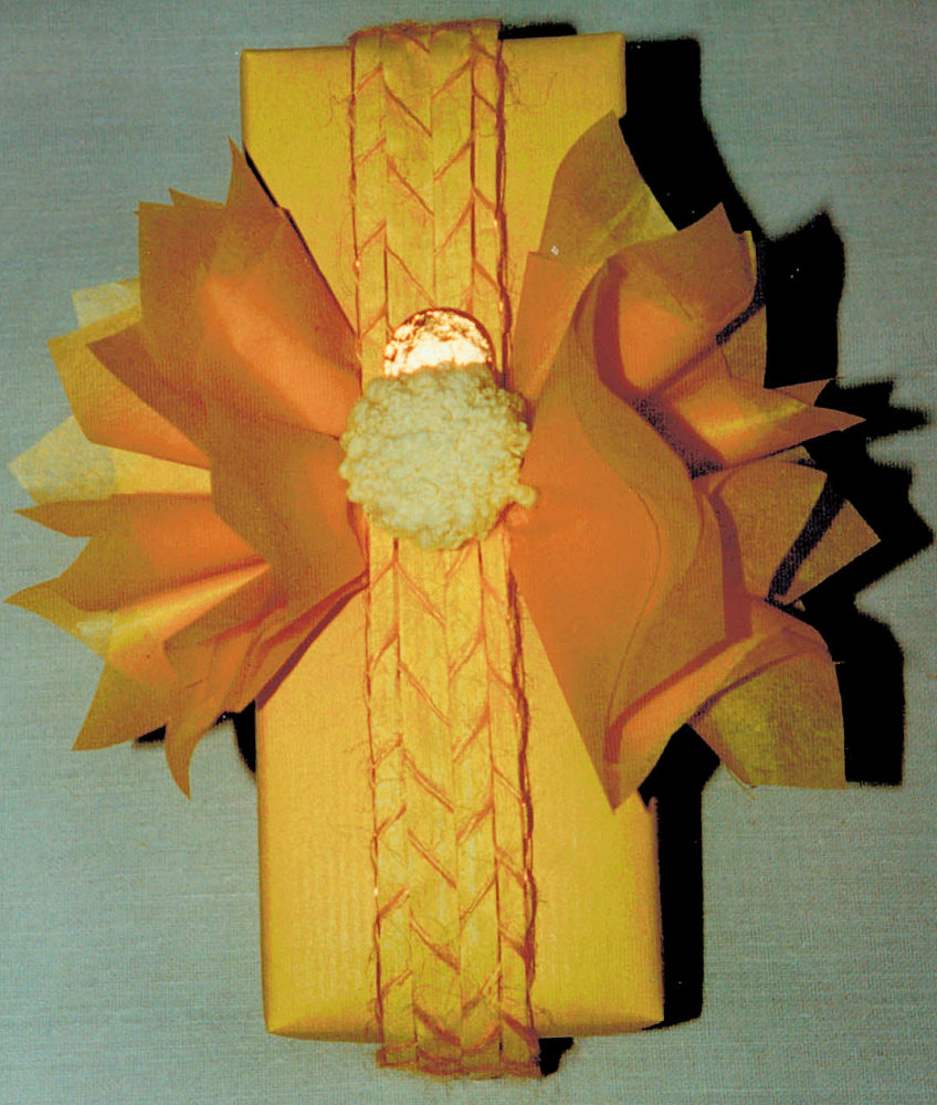 raffia ribbon with ball of wool leftover, button & silk paper wings Publiziert 12. Januar 2014 | Von Sabine Kurtz Die gesamte Größe beträgt 848 × 1000 Pixel organza layers hold with satin ribbon & little button » « box on artif.leaf, yellow silk rose on leaves & feather snippets