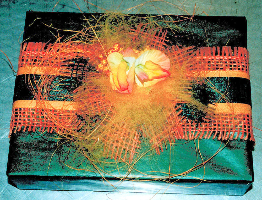 metallic paper with burlap & other ribbons, grass, spun yarn & silk sweet peas Publiziert 29. Januar 2014 | Von Sabine Kurtz Die gesamte Größe beträgt 1000 × 764 Pixel loose bow of crinkled paper ribbon, leaves, dried nat.material, pearl strings » « satin bow on orange burlap ribbon, spun yarn & dried orange slices