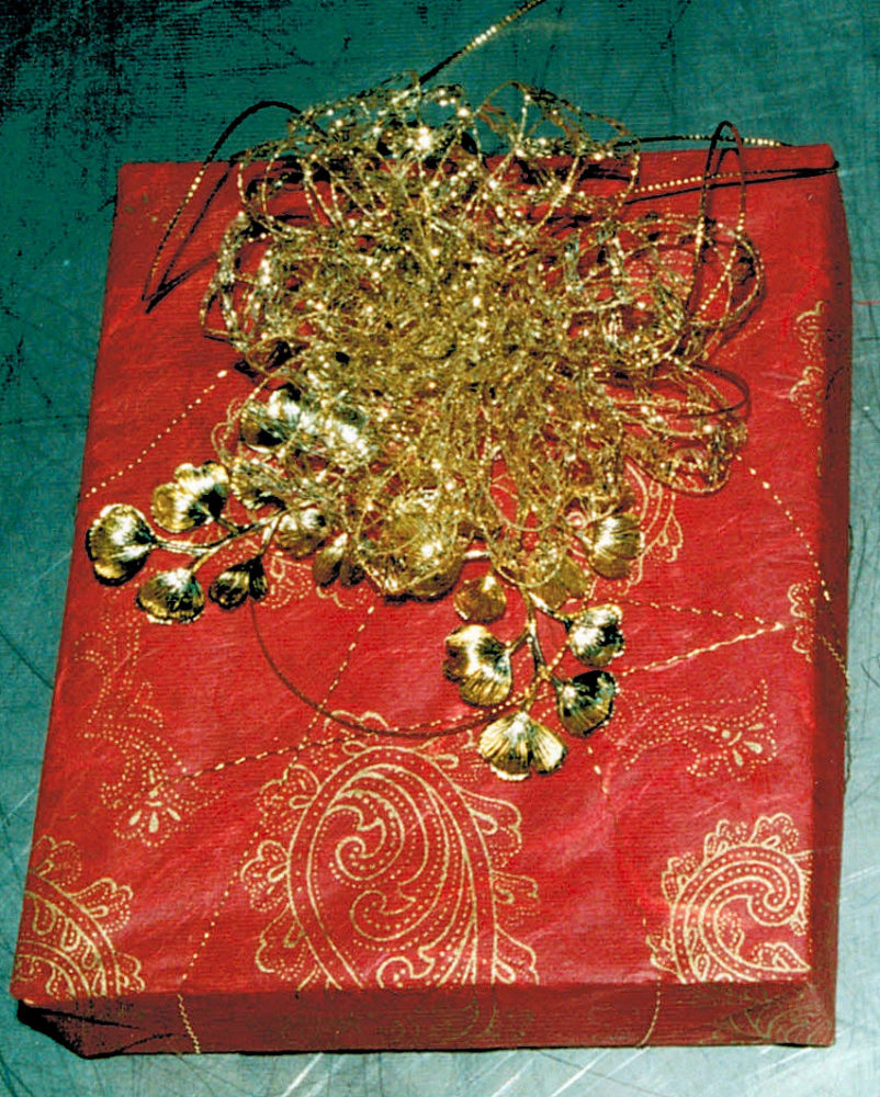paisley silk paper, filigrane bow off gold. strings, wire, loops & fern, crinkled gold wire Publiziert 29. Januar 2014 | Von Sabine Kurtz Die gesamte Größe beträgt 802 × 1000 Pixel paisley silk paper, straw & golden `angels hair´, lid of a former perfume bottle » « only an opulent mixed bow on metallic paper